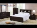 This sleek storage platform bed is crafted with solid wood and select veneers with a glossy smooth Cappuccino finish. The bed features a rectangular polished wood headboard with three cubbies perfect for showcasing decorative modern accessories. Three romantic lights are strategically placed in each nook with an on/off switch close at hand. The simple smooth wood footboard has chunky block feet adding to the impressive appearance of this harmonious design.